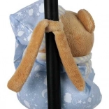The teddy bear has blue pajamas with a star and moon pattern, which creates a calming impression and makes it an ideal companion for a child's room.