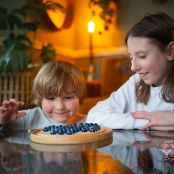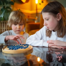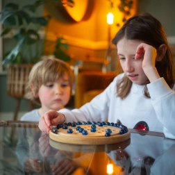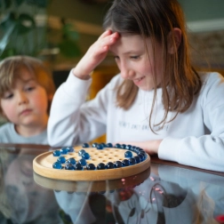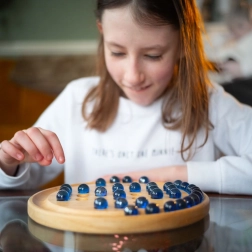 The smooth wooden round board and glossy glass marbles ensure a pleasant feel during play and long-lasting durability.