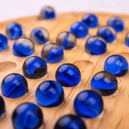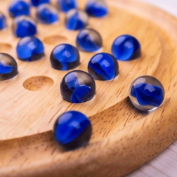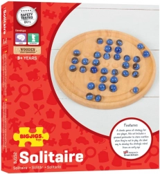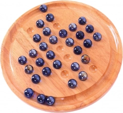 Discover timeless fun with the BIGJIGS TOYS wooden solitaire. Shiny blue marbles and a carefully crafted round board create an elegant logic game that will test your wits and patience. The goal is to jump marbles and leave just one marble on the board.