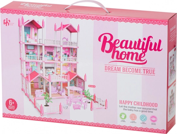 Great fun for your children! The Pink Villa offers endless possibilities for creative play. Kids can customize the four stories according to their ideas and create their cozy doll home. The package includes furniture and decorative elements that complete the realistic appearance.