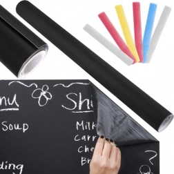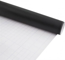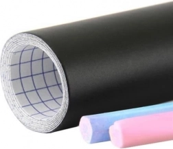 This board is coated with a special film that mimics the surface of a traditional school blackboard. It is easily cuttable so you can customize it to any shape or size you need.
