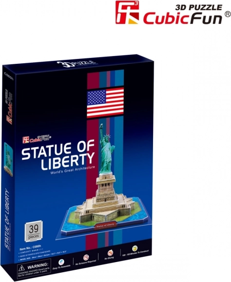 Discover the charm of an iconic landmark with the CubicFun 3D Puzzle Statue of Liberty with 39 pieces. Part of the World's Great Architecture series, it is made from special foam approximately 3 mm thick covered with laminated printed paper and assembles without glue or scissors. Ideal as fun for the whole family and a stylish interior decoration.