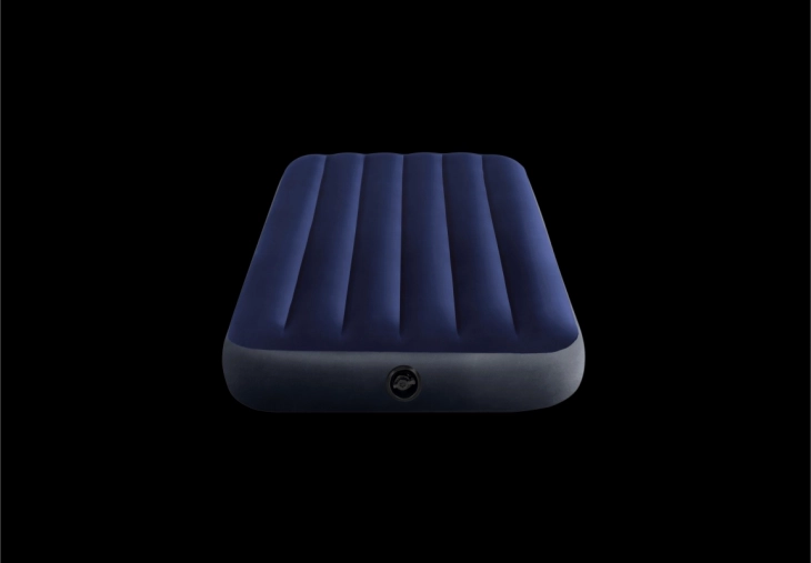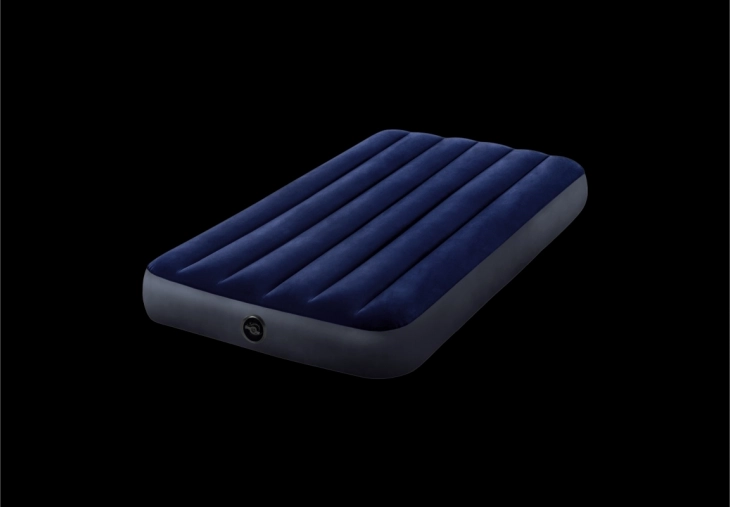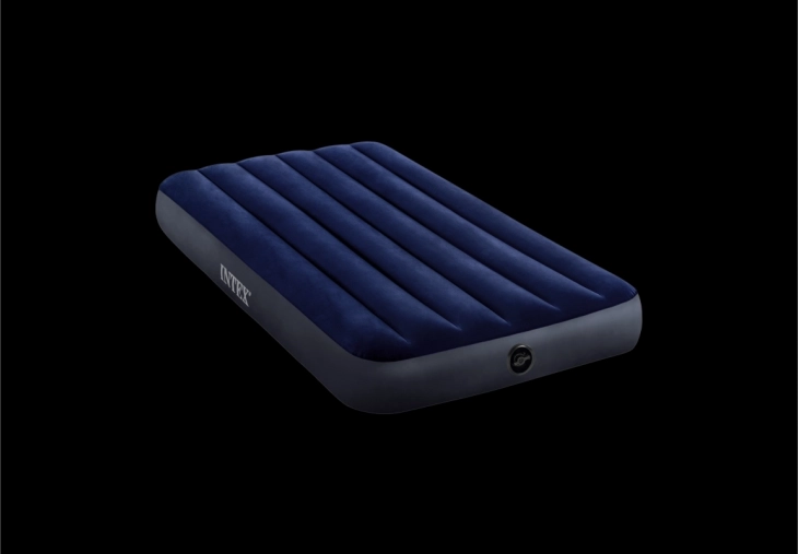 Practical single inflatable mattress measuring 191 × 99 × 25 cm from INTEX, ideal for home use and travel. Durable PVC with a velvety velour surface ensures a pleasant touch and better sheet grip, while Dura‑Beam Fiber technology provides stable support and long service life. An repair patch is included.