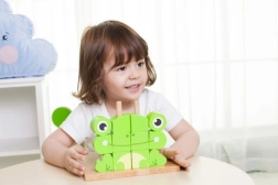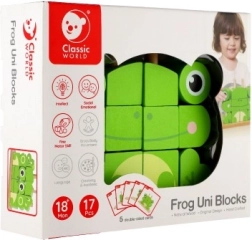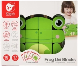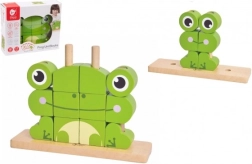 Delight your toddler with the Wooden Frog Puzzle Playset, a charming and versatile educational toy. This set includes 17 wooden pieces – 12 blocks, a base, and 4 poles – which can be combined in various ways to create imaginative structures and animals. It's perfect for enhancing creativity and motor skills in young children.