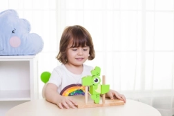 The Wooden Frog Puzzle Playset is packaged in a convenient box measuring 23 x 19 x 6.5 cm, making it easy to store and transport.