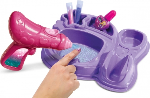 The package includes pink and purple glitter, nail polish, and an illustrated manual to keep the process easy and safe. The set is ideal for solo crafting or a fun afternoon with friends.