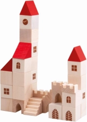 This wooden construction set includes 100 pieces of various shapes and sizes, allowing children to create their own small town. With colorful designs featuring red roofs and natural wood, this set is not only beautiful but also fully functional for imaginative play. It helps develop fine motor skills and spatial awareness in children.