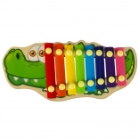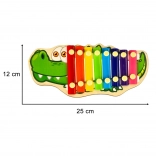 Discover the joy of music with this cute crocodile xylophone. Thanks to eight different tones, kids can easily play their first simple melodies. Playing the instrument supports creativity, patience, focus and helps build a sense of rhythm.