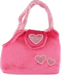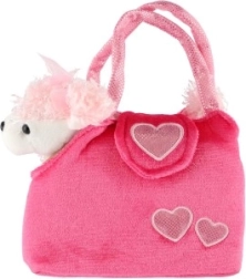 Adorable set for little fashionistas: a soft plush puppy tucked inside a pink handbag with decorative hearts. Perfect for travel, pretend play, and cuddling — the puppy can be removed from the bag at any time.