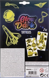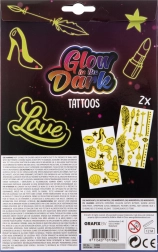 This set of glowing tattoos is ideal for girls who want to add sparkle to their style. Enjoy various designs available in the package, which includes two sheets of tattoos. Simply cut out, place on the skin, dampen with a sponge, and you're done! Application is quick and fun.