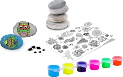 This complete creative kit turns ordinary stones into vibrant decorations. Thanks to the neon paints, your designs stand out both in daylight and under UV light, while the transfer stickers and self-adhesive eyes give your creations character. Everything you need is in one box—just open and create.
