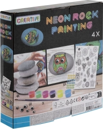 Discover fun and creativity with this neon rock painting kit. The set includes 4 smooth stones, 6 neon acrylic paints, a brush, a wooden stick, transfer stickers, and googly eyes with adhesive beads for striking decoration. An ideal creative activity for kids 8+ and adults alike.