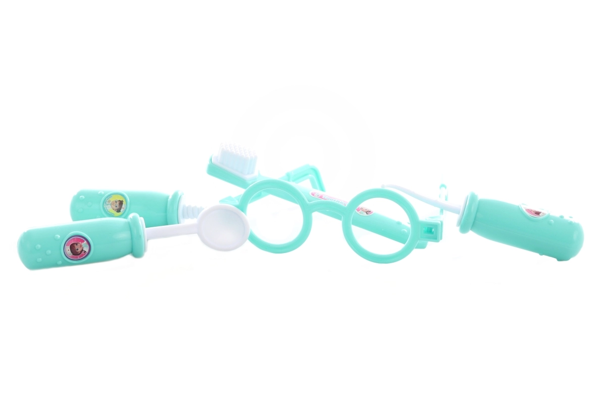 • Realistic accessories: stethoscope, glasses, toothbrush, drill, microscope, and more