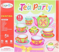 Design and color your own ceramic tea set. Includes a teapot, cups with saucers, a milk jug, and a sugar bowl, with paints and a brush. Ideal for creative children from 5 years.
