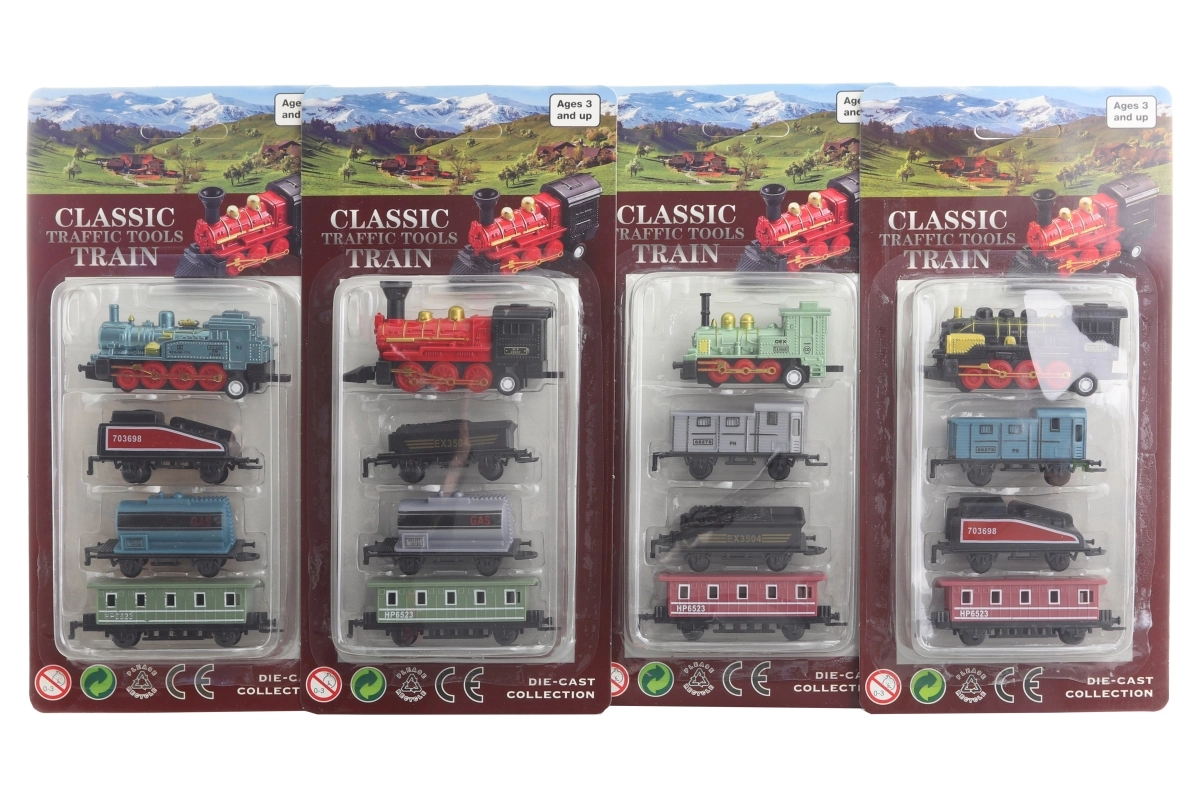 This compact set of metal trains is great for building your first train compositions. Thanks to the sturdy material and easy handling, it’s suitable for everyday play at home or on the go. Sized to fit a child’s hand, it supports the development of motor skills, imagination, and creativity.
