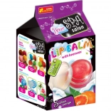 The lip balm nourishes, softens, and smooths the lips. It is the best protection for the delicate lip skin against drying and cracking. With this kit, you can make your own balm at home. The package includes everything needed for production (cocoa butter, beeswax, oil base, colorant, container, etc.). Package dimensions: 11.5 x 11.5 x 20 cm. Age 9+. MADE IN EUROPE.