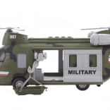 A realistic 1:16 scale military helicopter will delight every little pilot. Press the button to light it up and trigger authentic sounds. Powered by 3× AG13/LR44 batteries, which are included. An ideal gift for children aged 3+.