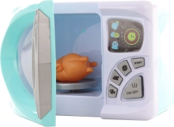 This children's microwave in a turquoise and white color combination is an ideal addition to any play kitchen. When switched on, the plate inside rotates and the play is enhanced by light effects that faithfully mimic a real appliance.