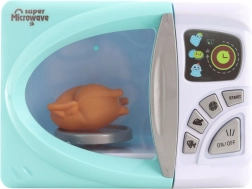 A fun children's microwave for little chefs offers realistic play with features like a rotating plate and light effects. Includes a plastic chicken for even more authentic cooking play. Powered by 2× AA batteries (not included). Suitable for children aged 3+.