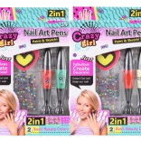 The nail set includes 2 nail polishes, a heart-shaped nail file, stickers, and adhesive beads. Package size approx. 16.5 x 26.5 x 4.5 cm. Age 3+