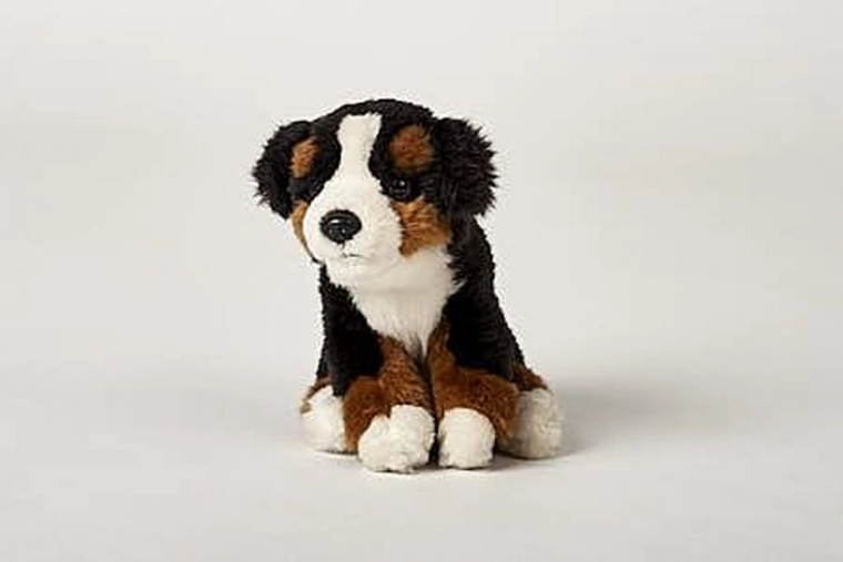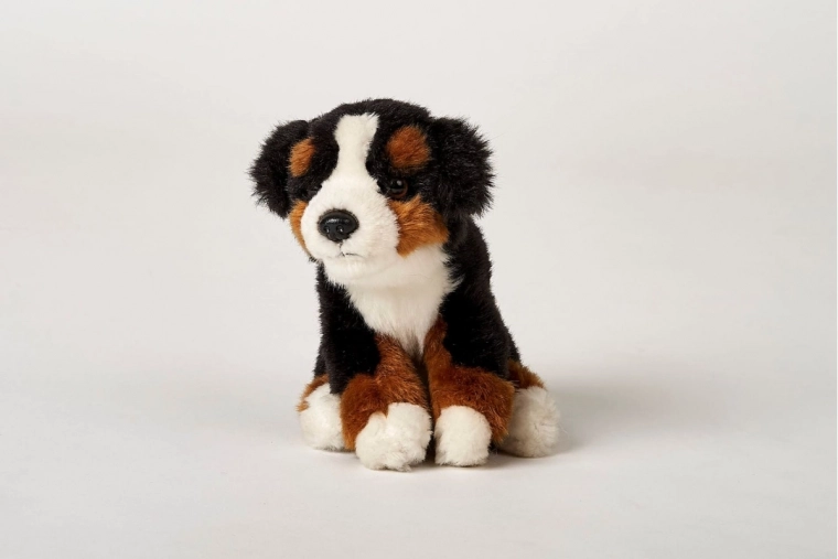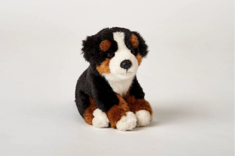 This plush Bernese Mountain Dog delights with its gentle craftsmanship and adorable expression. Thanks to its smaller size, kids can easily take it to bed, in the stroller, or on trips. The safe design is suitable from birth.