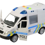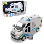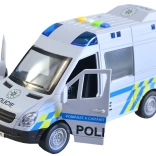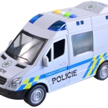 A realistic police van for little first responders featuring Czech voice announcements from the crew and dispatcher, a working blue light bar, and a friction drive. Opening doors and detailed 1:16 scale design guarantee lots of fun. Vehicle length is 21 cm, powered by 3× 1.5 V AG13. Suitable for ages 3+.