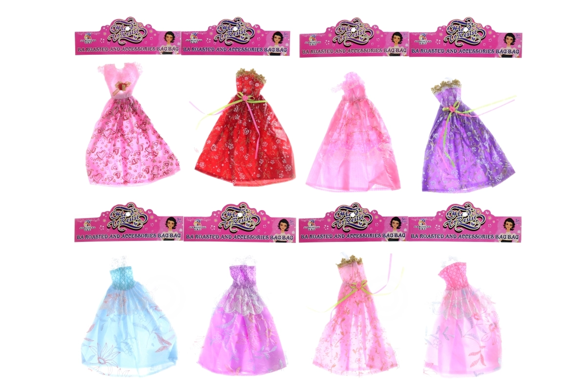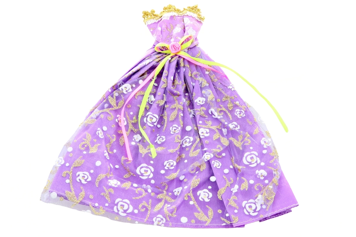 Treat your doll to an elegant outfit with these ball gown dresses for dolls measuring approx. 22 cm. Each piece is unique in a mix of colors and patterns, easy to put on, and ideal for creative play and dress-up. Packed in a plastic sleeve. Illustrative photo – color variants may differ depending on stock availability.