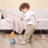 By pulling the little fox, children practice hand–foot coordination, learn to keep pace, and improve stability while walking.