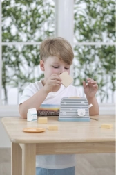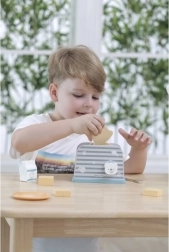The wooden toaster is designed to provide children with a safe and enjoyable way to engage in kitchen play. With a simple design and durable structure, it is perfect for imaginative play and developing motor skills.