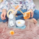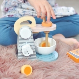 The mixer features a swiveling arm and movable beater, allowing children to play realistically with kitchen utensils.
