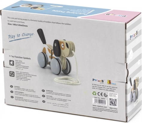 The wooden dog on a string from the VIGA POLARB collection accompanies children on their first walks and turns every step into fun. Thanks to the rubber treads on the wheels, the ride is quiet and smooth, and when the child pulls, the tail wags cheerfully.