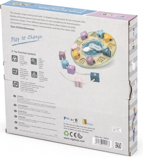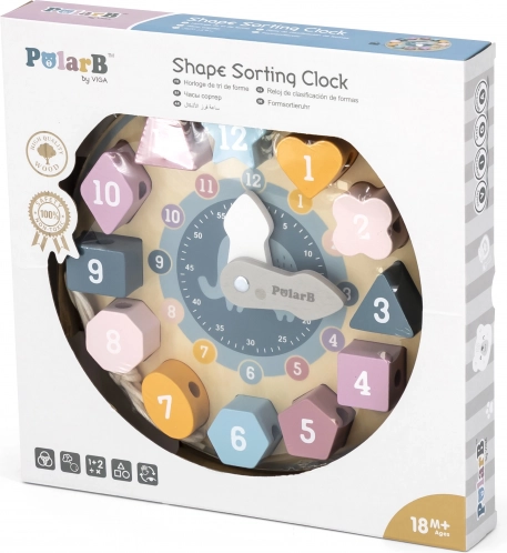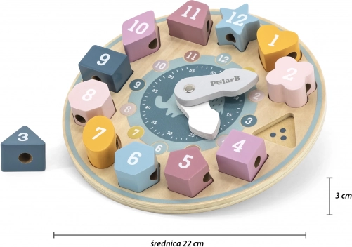 wooden educational clock POLARB with shape sorter and lacing