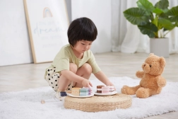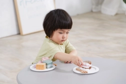 Solid wood with a smooth lacquered finish feels pleasant to the touch and resists wear. Playing with the desserts develops fine motor skills, coordination, communication, and social play. Suitable for children from 18 months and a great addition to a play kitchen or as a gift.