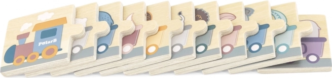 Discover a fun way to learn with the PolarB wooden puzzle. Children playfully practice numbers, colors, and logical matching. They pair animals with the corresponding numbers and build a colorful train in the correct order. Ideal for developing hand–eye coordination and fine motor skills.