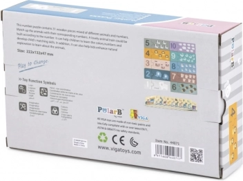 Includes a total of 31 wooden pieces with illustrations of animals and numbers that children match and arrange in the correct order. High-quality wooden workmanship, pleasant colors, and durability make this set a great choice for everyday play and learning.