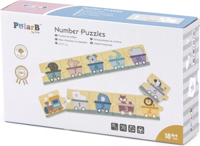PolarB wooden number and animal puzzle. 31 pieces for learning counting, colors, and logic. Safe Montessori play for children from 18 months.