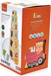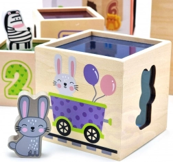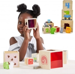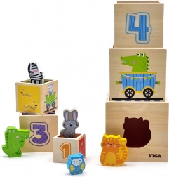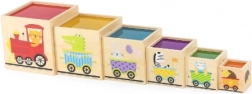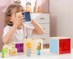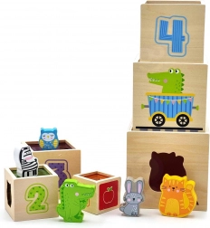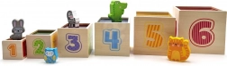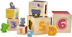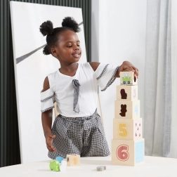 This amazing set contains six blocks of different sizes, each with its specific motifs. Children learn to differentiate numbers, shapes, colors, sizes, and animals. The blocks can easily be placed inside each other or stacked on top of each other, helping children understand the concept of arrangement and sequence.