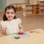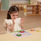 Introducing the wooden fruit puzzle by Viga, which serves not only as a traditional puzzle but also helps your child develop fine motor skills, shape recognition, and coordination abilities. The puzzle includes 4 pieces in fruit shapes with simple handles for easy grasping.