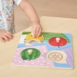 The puzzle includes pieces with handles for easy handling by even the smallest children.