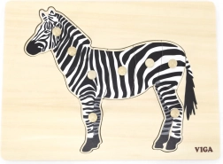 This wooden zebra peg puzzle is an ideal first puzzle for the youngest children. The pieces with round pegs are easy to grasp, supporting a proper finger grip and strengthening concentration. The contrasting black-and-white design captivates and motivates repeated play.