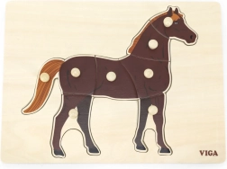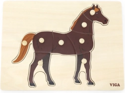 The Montessori peg puzzle with a realistic horse motif guides children toward independent exploration and focus. Using the practical knobs, they can easily grasp the individual pieces, learn to recognize shapes, and practice precise movements. Thanks to the contrast between natural wood and the brown horse, the outlines are clearly visible and invite play.