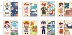 Children explore 8 different professions and their settings. The work theme nurtures curiosity, vocabulary, and understanding of the world around us.
