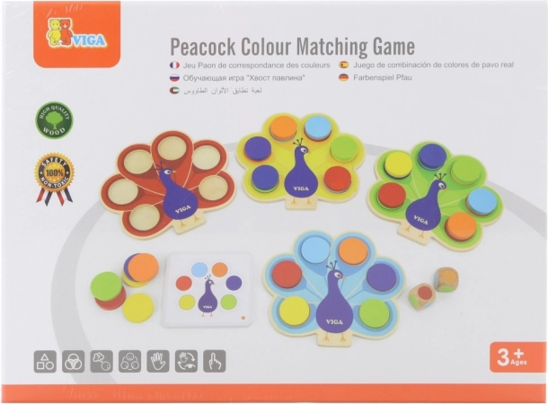 Discover a smartly designed wooden game where children complete the peacock’s colorful tail. Using double-sided cards or the results of dice rolls, they insert discs into the correct slots, gently practicing logical thinking, attention, and movement synchronization. Safe beech-wood construction and non-toxic paints ensure carefree fun.