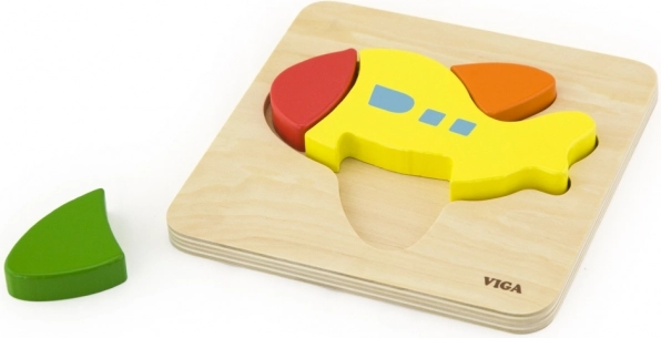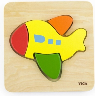 The Viga Wooden Puzzle Airplane is an ideal first puzzle for play at home or in preschool. With four colorful, robust pieces, children quickly learn to match shapes to the corresponding recesses. High-quality workmanship, smooth edges, and non-toxic paints ensure safe play.