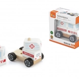 This wooden ambulance is a great combination of a puzzle and a rolling toy car. Children can assemble the individual pieces into an ambulance and then enjoy driving thanks to the smoothly turning wheels. Robust wood, quality paints, and rounded edges ensure safe play and long-lasting durability.