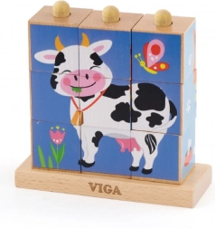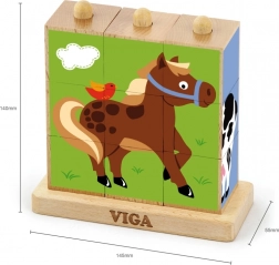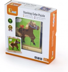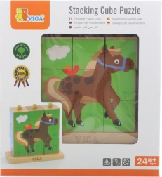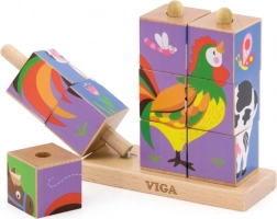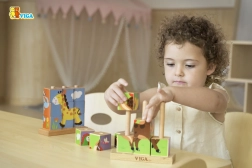 Discover a quality wooden cube puzzle that both entertains and develops children. The base and pegs are made of high-quality solid beech wood; the blocks slide easily onto the pegs and, thanks to their tilting, turning while assembling the pictures is smooth and comfortable.
