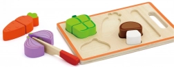 With this wooden set for cutting vegetables, children can mimic cooking in their own kitchen. It includes a variety of wooden vegetable pieces, a cutting board, and a knife, allowing for safe and fun cutting. Suitable for children from 18 months, this set supports the development of motor skills.