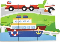This wooden jigsaw featuring images of vehicles is a great choice for a first “bigger” puzzle. With 24 pieces, assembling is just the right challenge—supporting focus and the joy of completing a picture measuring approximately 27.5 × 20 cm. Colorful illustrations of vehicles (ambulance, fire engine, police car, boat, airplane, etc.) naturally motivate children to play again and again.