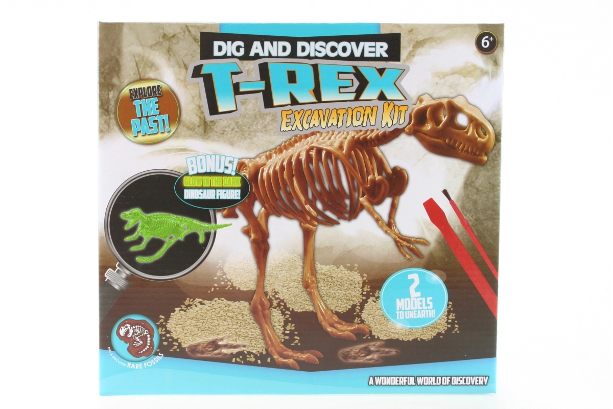 Chiseling block, hammer, brush, chisel, T‑Rex skeleton (10 pieces), glow‑in‑the‑dark figurine