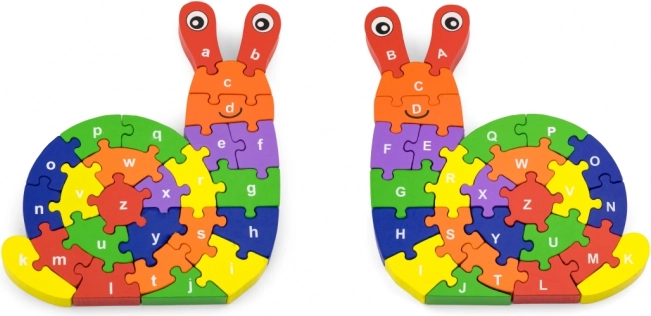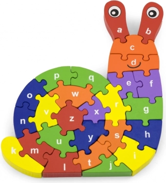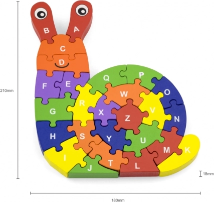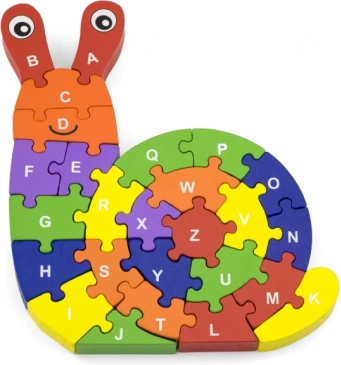 Assemble this colorful snail, each of its pieces marked with an alphabet letter. This fun and educational puzzle not only supports learning letters but also improves fine motor skills and spatial awareness.